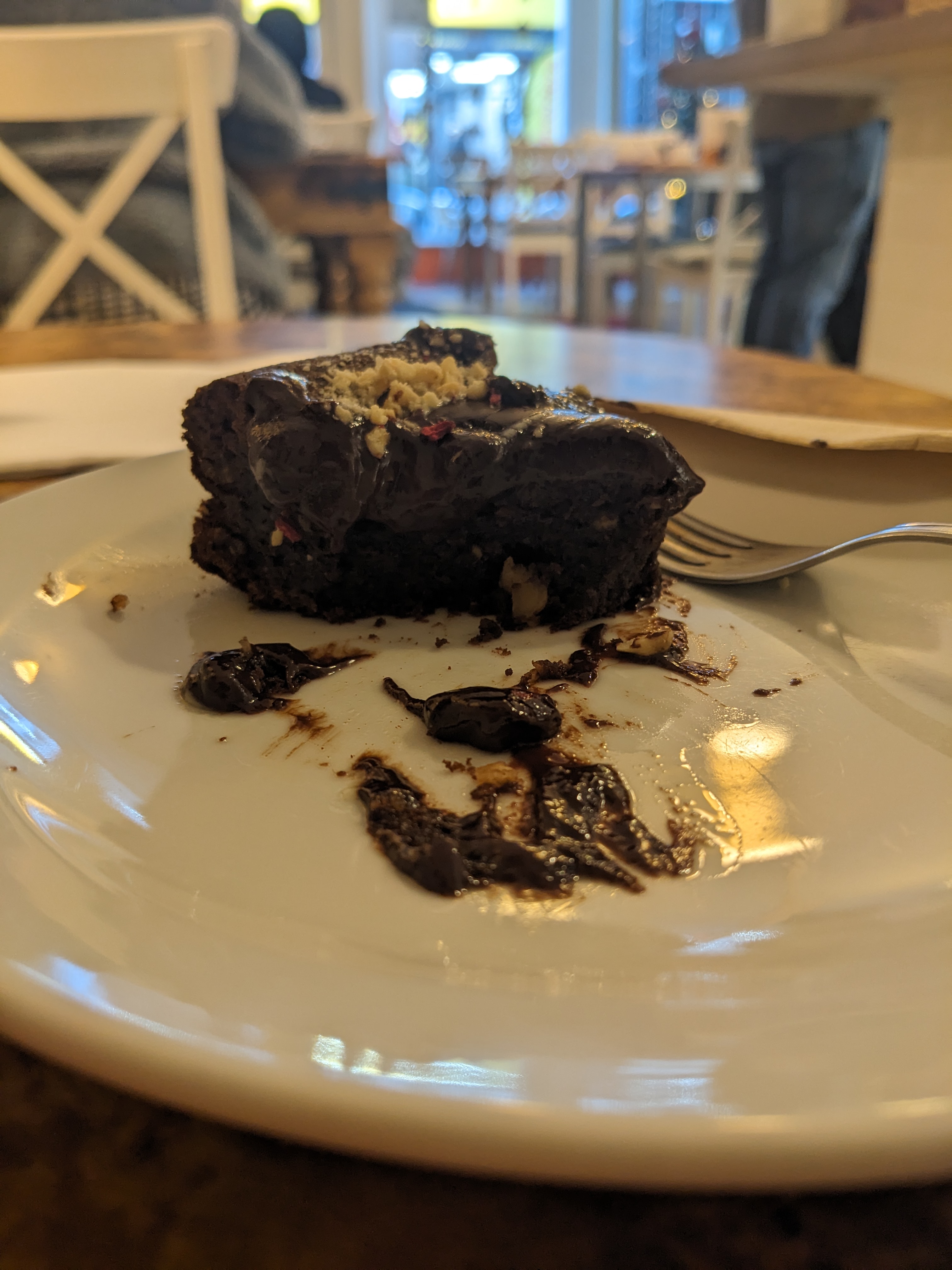 I went for the usual rooibos tea and Nutella cake combo. My top tip for you, dear reader, is to ask for the Nutella cake to be warmed. This turns a very nice chocolate and hazelnut cake into a glossy and gooey chocolate cake-pudding hybrid. Usually they offer to warm it when you order it, but if they don’t then please ask. On a cold January day, it was the perfect cake hug.