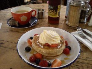 I had a pot of rooibos tea with oat milk and the American pancakes with a fried egg and streaky bacon and maple syrup (which I asked for on the side). All of it was good and the pancakes weren’t too heavy. The menu was all breakfast items but that’s to be expected as I was there mid-morning. I’m assuming the menu changes later in the day.