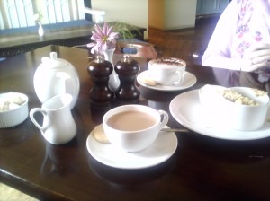 I usually don’t review the tea that restaurants serve as it’s often the same mediocre stuff and I just get bored. Jamie’s Italian was a pleasant surprise in that the tea had been thought about as much as the food. There wasn’t a great choice of black tea, just Earl Grey or Breakfast, but there were herbal and fruit teas as well. It was a teabag job, but at least it was a good teapig tea bag job. The tea pot was a heavy iron thing and was a sharp contrast to the glass cup and saucer. Good food and good tea, it doesn’t get much better than that.